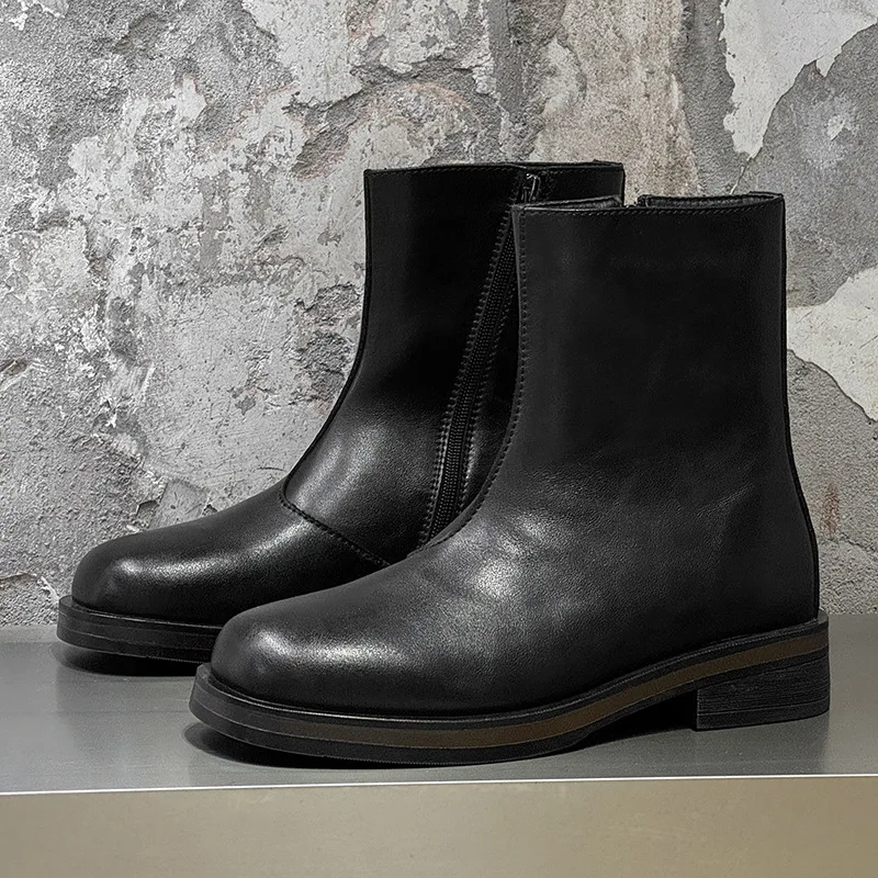 Повседневные кожаные ботинки. Модные ботинки с большим носком. Застежки-молнии со шнуровкой. Несколько дизайнов. Мужские высокие короткие ботинки на толстой подошве.