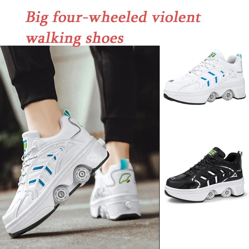 Обувь для роликовых коньков, мужские 4-колесные кроссовки двойного назначения с деформацией на роликах, женская спортивная обувь, студенческий подарок на день рождения, обувь для паркура