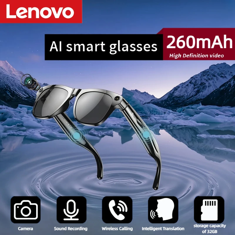 Умные очки Lenovo HD AI с фотохромными линзами, многофункциональные, с Bluetooth-звонками, голосовым помощником, музыкальным плеером, функцией перевода и камерой