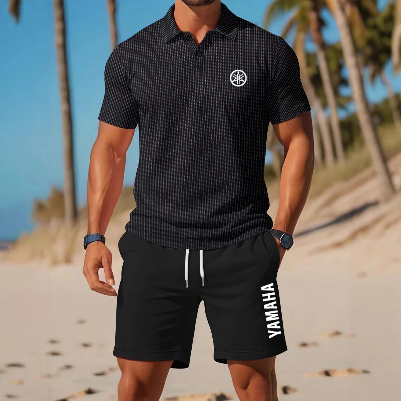 Мужской комплект Yamaha: разноцветная футболка-поло с коротким рукавом и шорты из вафельного трикотажа, повседневный дышащий влагоотводящий костюм для улицы.