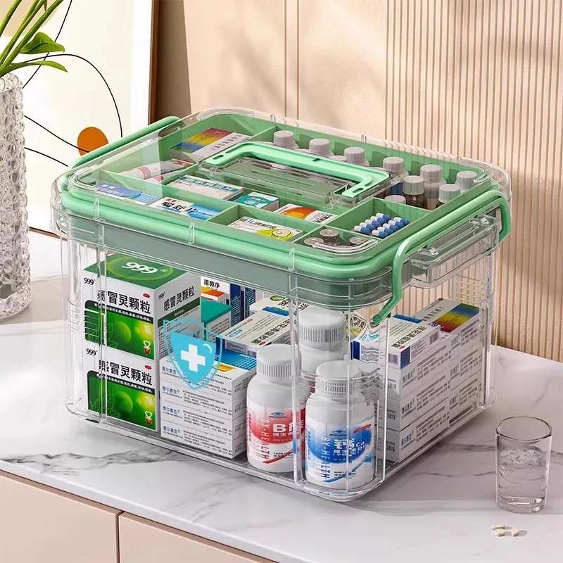 Многофункциональный многослойный ящик для хранения с ручкой, большой/очень большой размер - для хранения канцелярских принадлежностей, швейных принадлежностей, офисных принадлежностей, прочный водонепроницаемый ящик для лекарств/аптечка, ящик для хранения с отдельными маленькими ящиками для лекарств, подходит для хранения и организации вещей дома, в спальне, для путешествий, можно разместить под кроватью, портативный для использования в школьных общежитиях и легко найти.