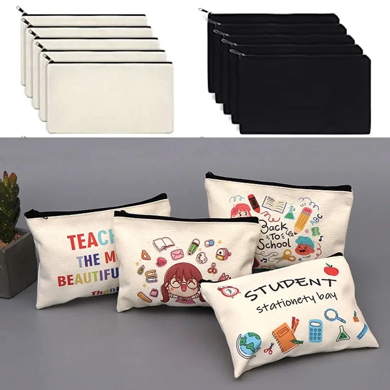 10 шт. пустая сумка для рукоделия «сделай сам», хлопковая парусиновая ручка на молнии, пенал, сумка для школьных принадлежностей, косметичка для макияжа, косметичка для туалетных принадлежностей