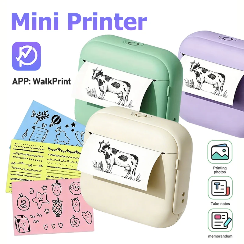 Мини-принтер Бумага Самоклеящаяся термобумага HD Цветные принтеры для этикеток Беспроводной принтер для этикеток Бесчернильная печать Универсальный 57 мм