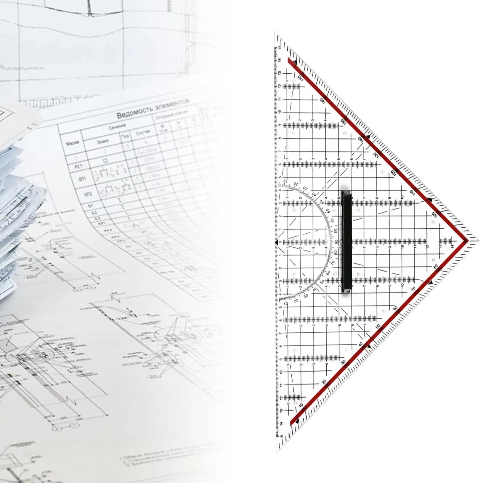 1 комплект, пластиковая прозрачная линейка, треугольная шкала, транспортир, математический измерительный инструмент для рисования для школы, офиса, художественных архитектурных проектов