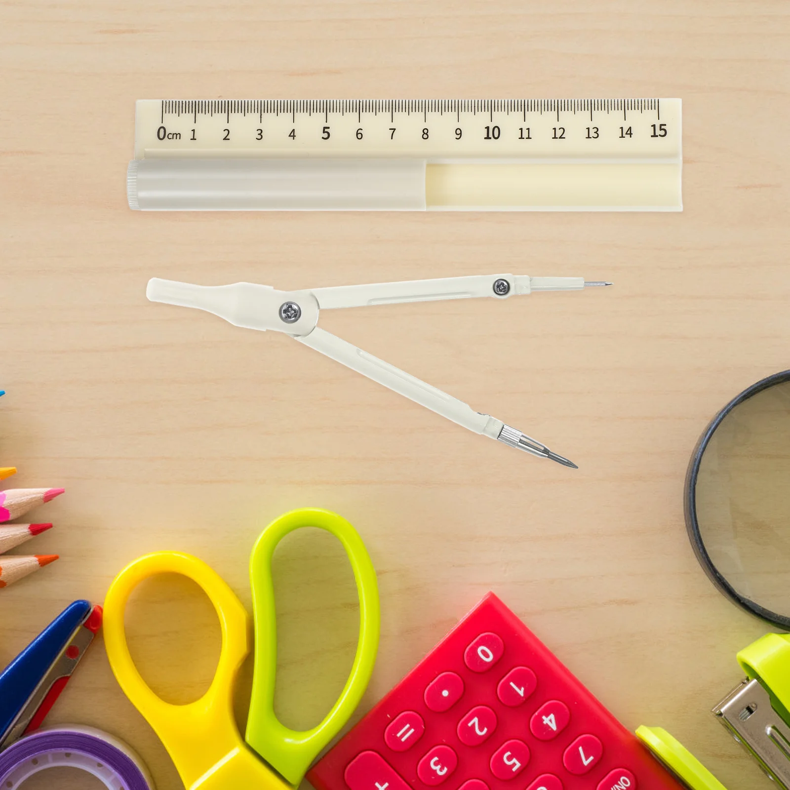Многофункциональный набор: циркуль, ручка, линейка (желтый) для школы, офиса, геометрии, черчения, точного измерения, портативный дизайн, для студентов