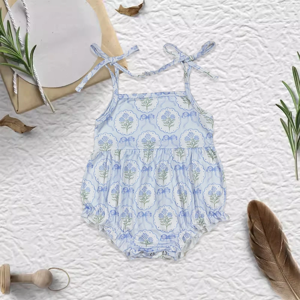Летний детский комбинезон с маленькими голубыми бантиками и принтом венок, эксклюзивная одежда для малышей, комбинезон с длинными рукавами в стиле вестерн