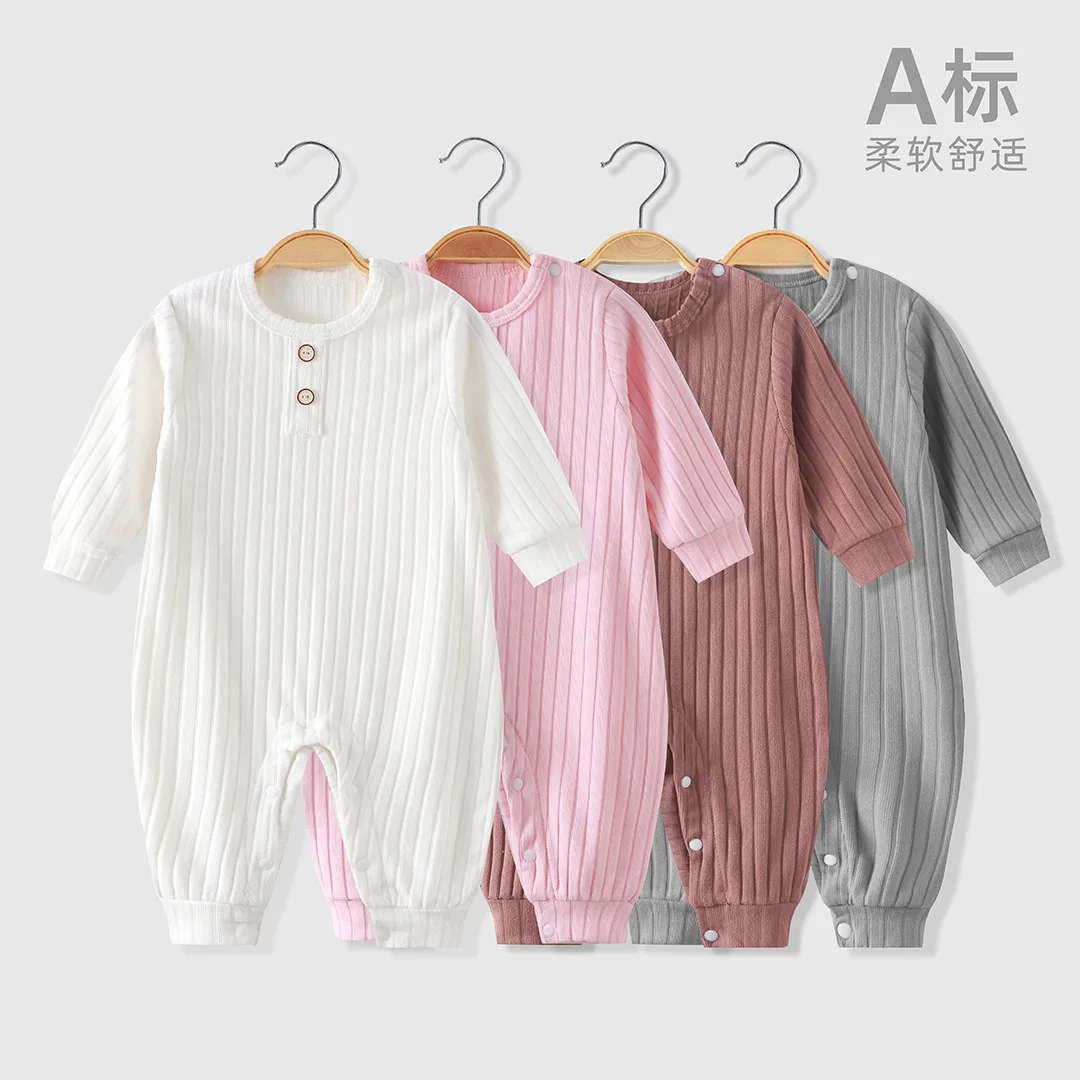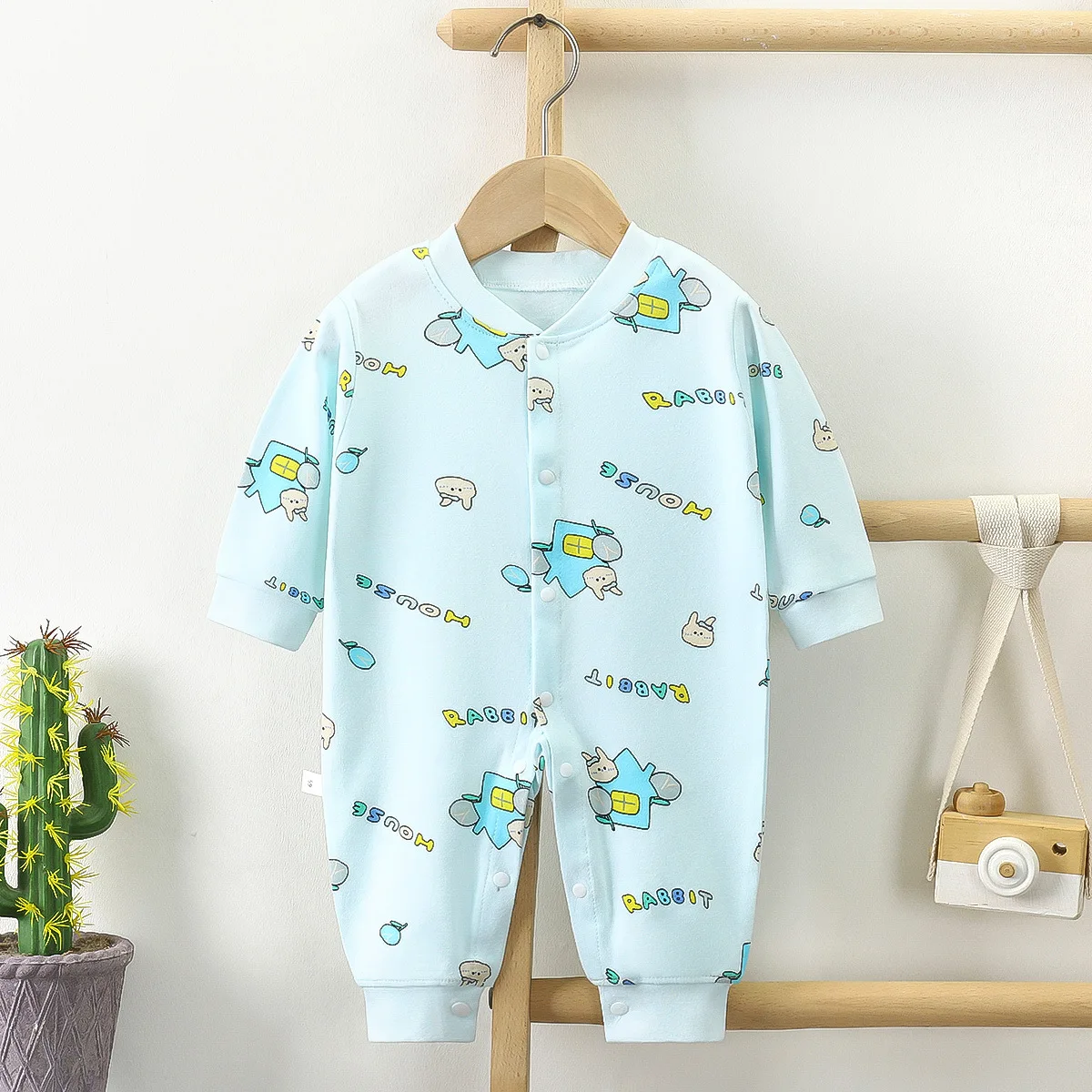 Новый комбинезон для новорожденных на весну-осень, милый повседневный ромпер из чистого хлопка для малышей 0-18 месяцев, с принтом, для мальчиков и девочек