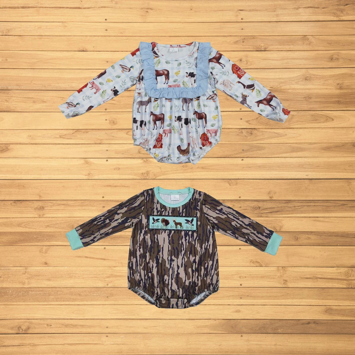 Оптовая продажа, осенняя горячая распродажа, бутик в западном стиле, детские комбинезоны для новорожденных девочек с длинными рукавами и рюшами, фермерские домики, цыплята