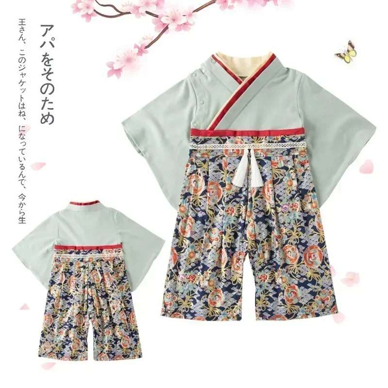 Детский комбинезон для мальчиков и девочек, халат в стиле ретро, униформа, одежда, пижамы для младенцев, костюм с цветочным принтом, кимоно для детей 1–3 лет, одежда для малышей в японском стиле