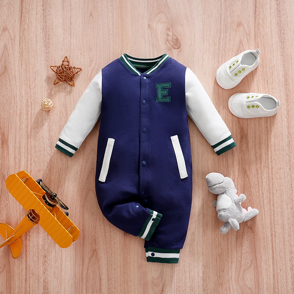 Бейсбольный костюм для новорожденных, хлопковый комбинезон для маленьких мальчиков и девочек, пижамы с длинными рукавами и вышитыми буквами, наряд для детей 0-3 лет, мягкий комбинезон для младенцев