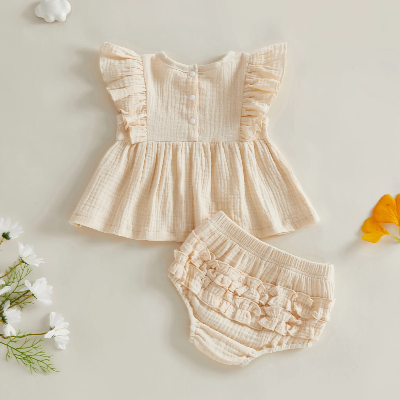 Tregren От 3 до 24 месяцев, летняя одежда для маленьких девочек, однотонные топы с рюшами и шорты с летающими рукавами, комплекты из хлопка и льна из 2 предметов