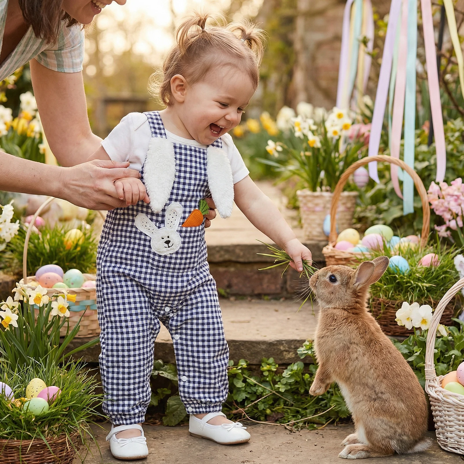 Комбинезон Blotona для маленьких девочек и мальчиков на Пасху, комбинезон без рукавов с квадратным вырезом и вышивкой в виде кролика и моркови, весенне-летняя одежда