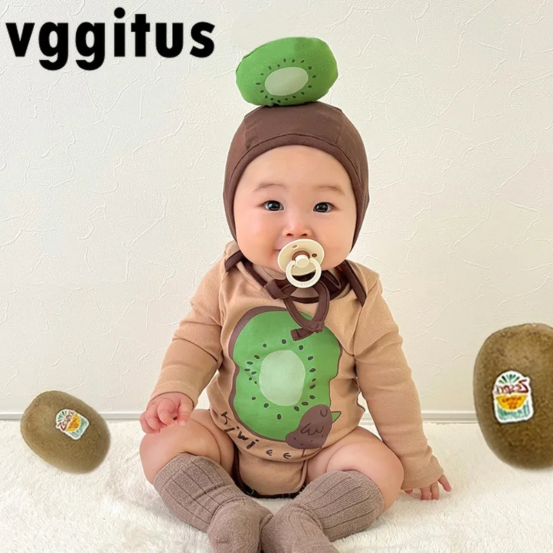 Весенне-осенний боди для маленьких девочек и мальчиков, комбинезон с длинными рукавами и рисунком кивиifruit, одежда для младенцев и маленьких детей B2995