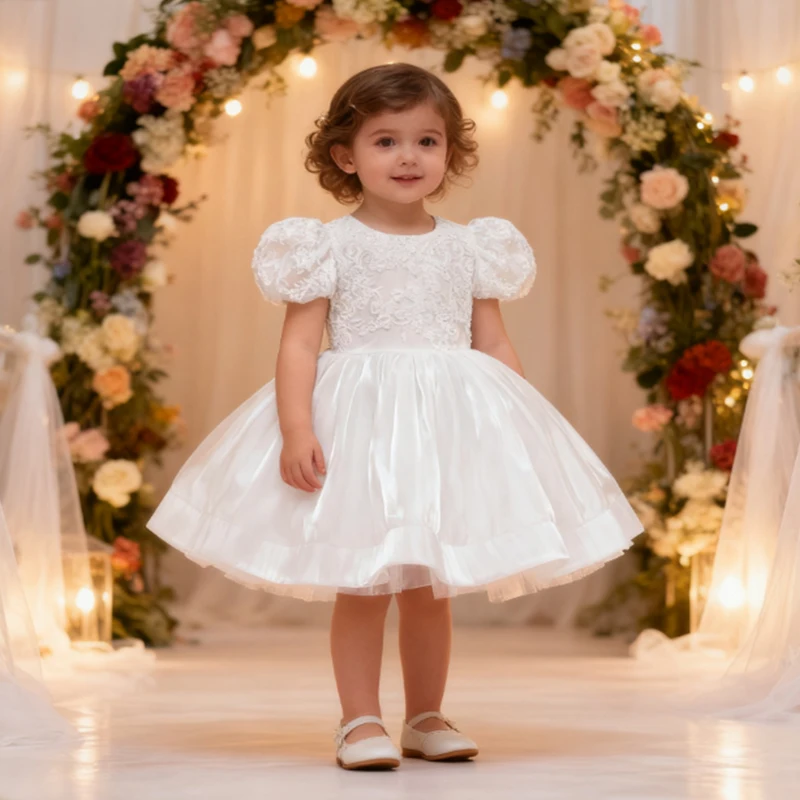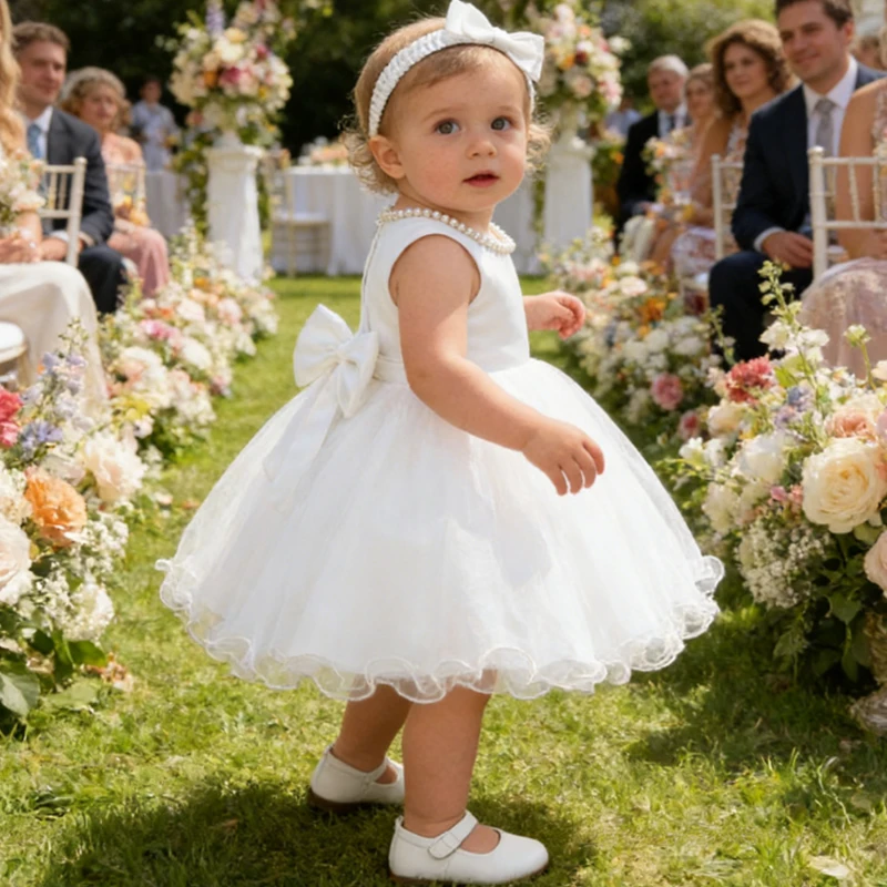 Белые детские платья Элегантное однотонное детское платье с большим бантом Белое платье для свадебной вечеринки Платье для крещения на первый день рождения