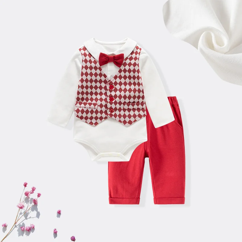 Детские комбинезоны UNITIM для маленьких мальчиков, 2 шт., клетчатые комбинезоны с воротником-бантом для новорожденных мальчиков на день рождения + однотонные комбинезоны с штанами для малышей