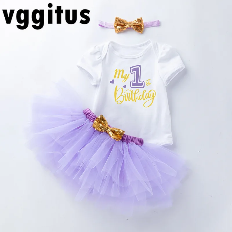 Новый летний праздничный комплект для маленьких девочек на день рождения, боди с короткими рукавами и сетчатая юбка-пачка принцессы, наряды из трех предметов для волос H5615