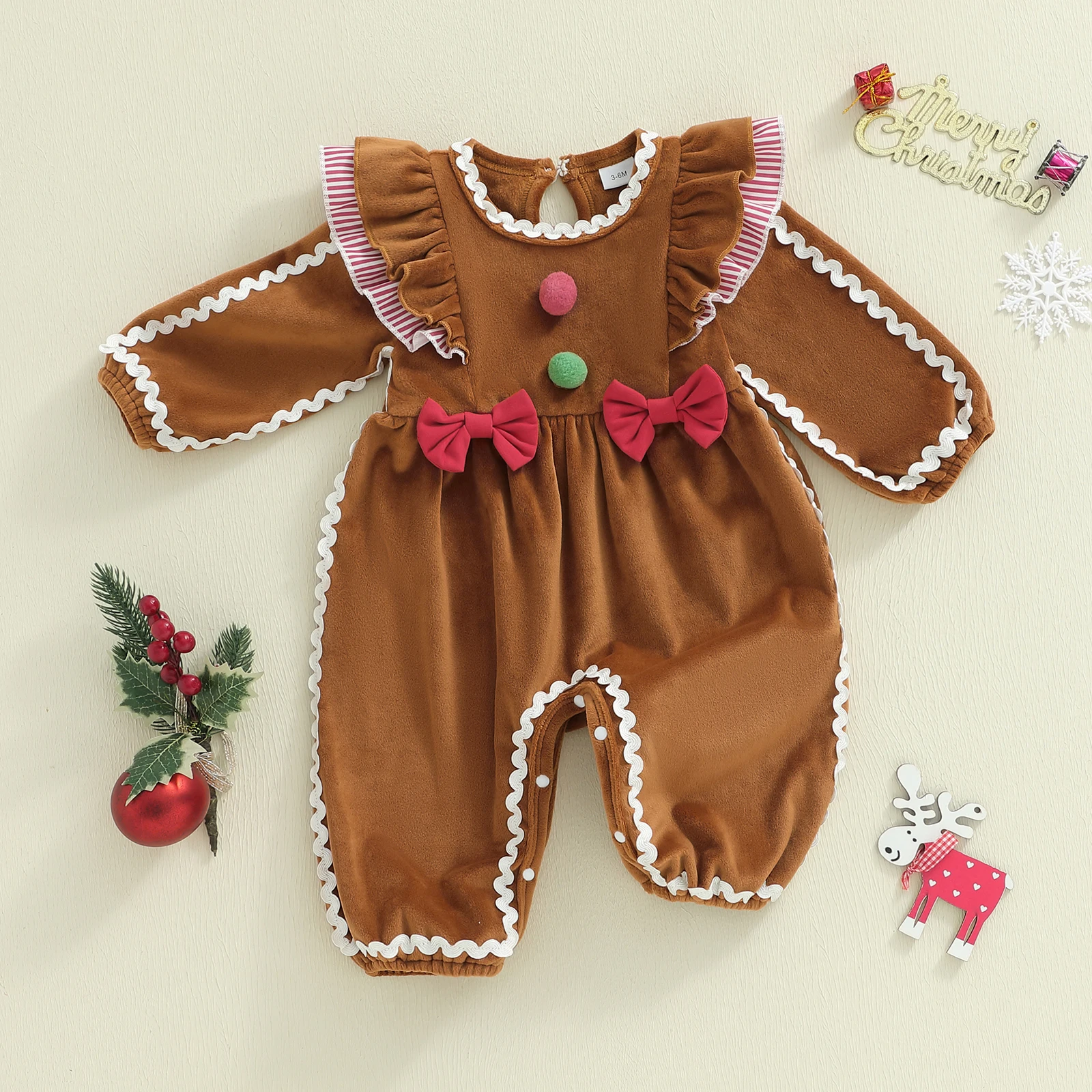 Мой первый рождественский наряд для маленьких девочек, комбинезон с пряничным человечком, комбинезон для новорожденных, боди с рыжим хлебом, рождественская одежда