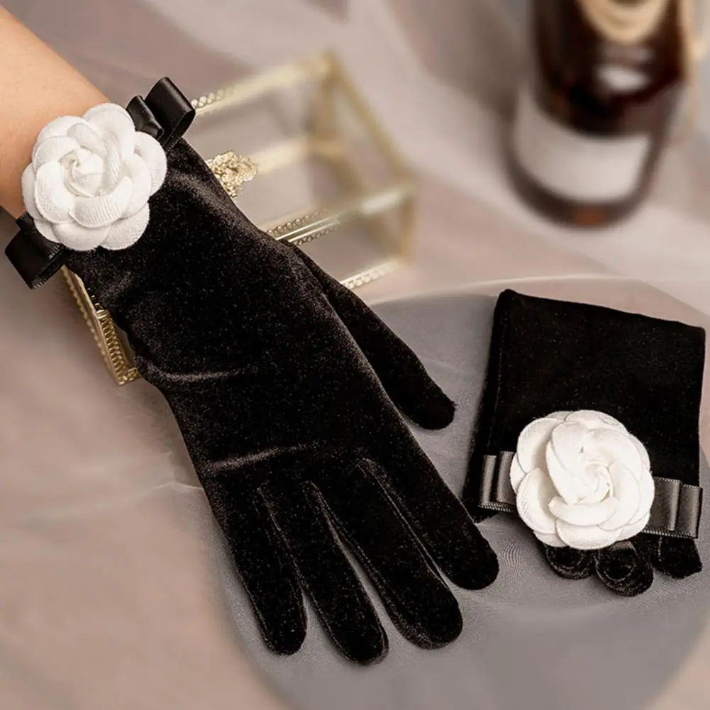 Женские кружевные перчатки с цветочным принтом длиной до запястья, варежки для вождения на свадьбу/вечеринку, перчатки с полным пальцем для ужина, необычные аксессуары для костюмов