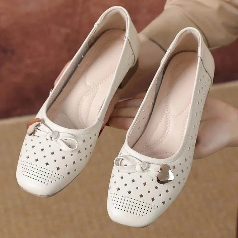 Новые туфли премиум-класса с отверстиями на танкетке, на среднем каблуке, 2025 г., элегантные удобные дышащие кожаные туфли, женские туфли больших размеров, белые