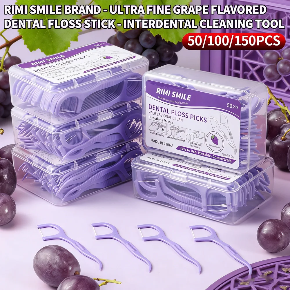 Зубочистки RIMI SMILE с нитью, 50/100/150 шт., ультратонкие, со вкусом винограда, одноразовые, высокопрочные, для межзубных промежутков, средства для ухода за полостью рта