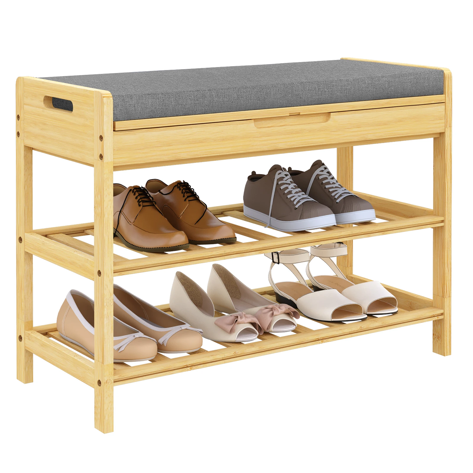 Шкаф для хранения обуви WOLTU, полка для обуви, 3-х уровневая скамейка для обуви с сиденьем, металлический деревянный органайзер для шкафов для прихожей, дома
