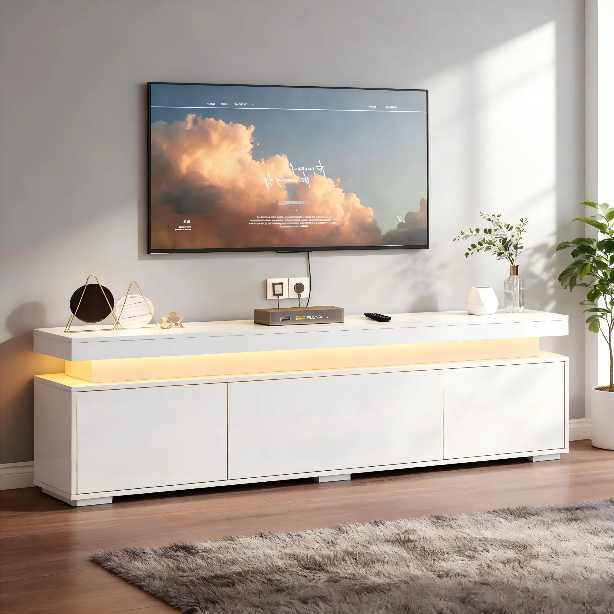 Шкаф для гостиной, тумба под телевизор, 150*35*43 см, вместительное хранилище для устройств, шкаф для хранения с 3 дверцами, низкий шкаф с LED-подсветкой
