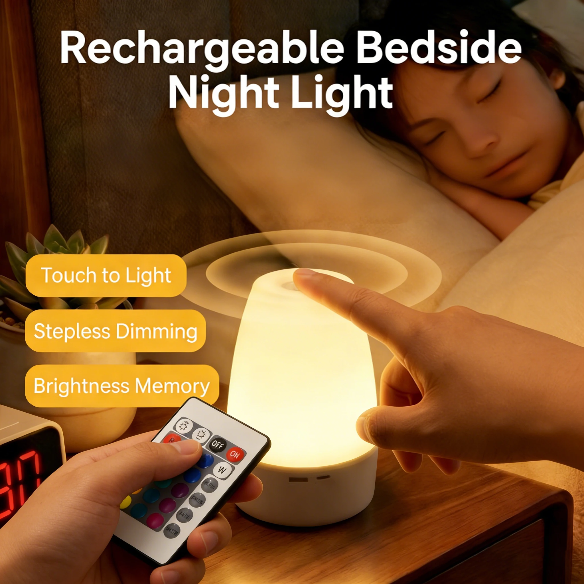 Сенсорные светодиодные светильники с регулируемой яркостью, ночник с пультом управления, USB-зарядка, светодиодная настольная лампа, 3 цвета, ночная лампа для детей, подарок