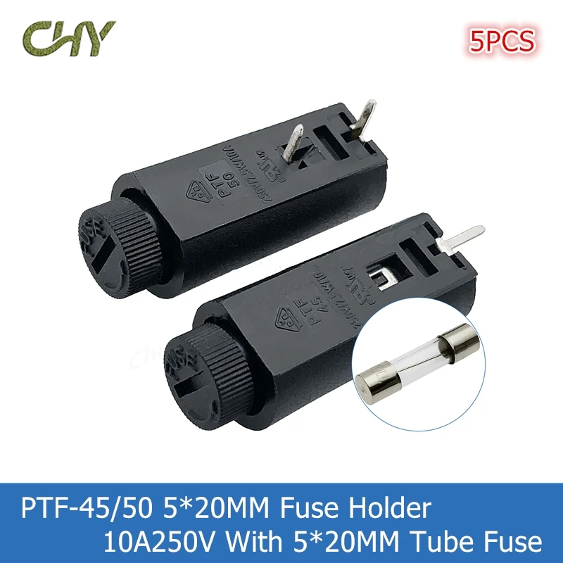 5 шт./лот PTF-50/45 предохранитель 5x20 держатель трубки предохранителя коробка для крепления на панели печатной платы вертикальный и горизонтальный тип высокотемпературная розетка