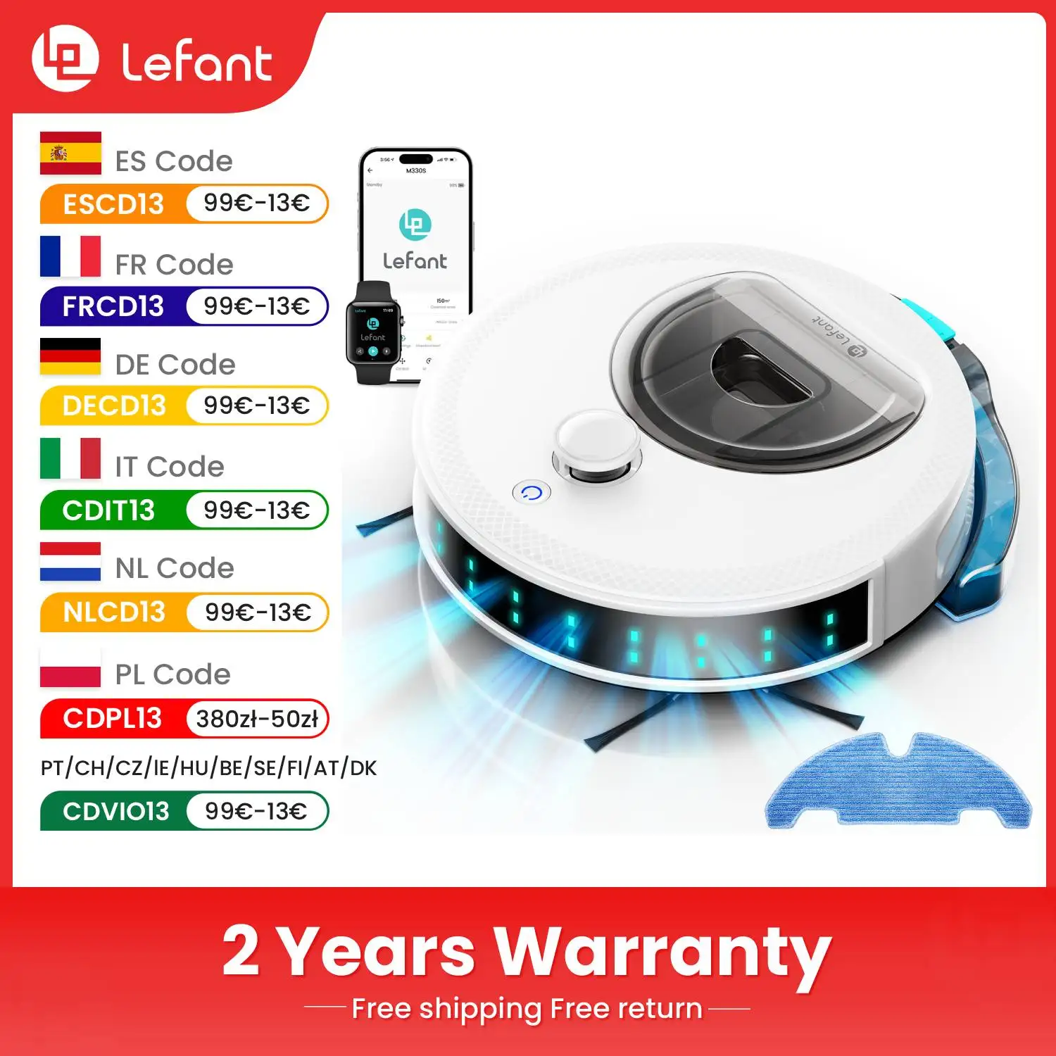 Робот-пылесос и швабра Lefant M330S LiDAR, 190р ° Робот-пылесос PSD для предотвращения препятствий, 150 минут, 2,4G/5G Wi-Fi, шерсть домашних животных и ковер
