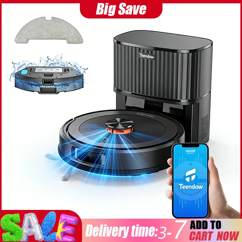 Робот-пылесос и швабра Teendow D10S MAX 2-в-1 с автоматической пустой станцией, мощным всасыванием 4500 Па, интеллектуальное картографирование, для дома