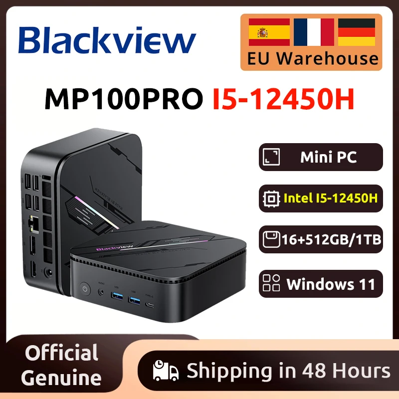 Blackview MP100PRO НОВЫЙ мини-ПК Intel I5-12450H Windows 11, 8 ядер, 12 потоков, 16 ГБ + 512 ГБ/1 ТБ, Wi-Fi 6, мини-компьютерный ПК BT5.2