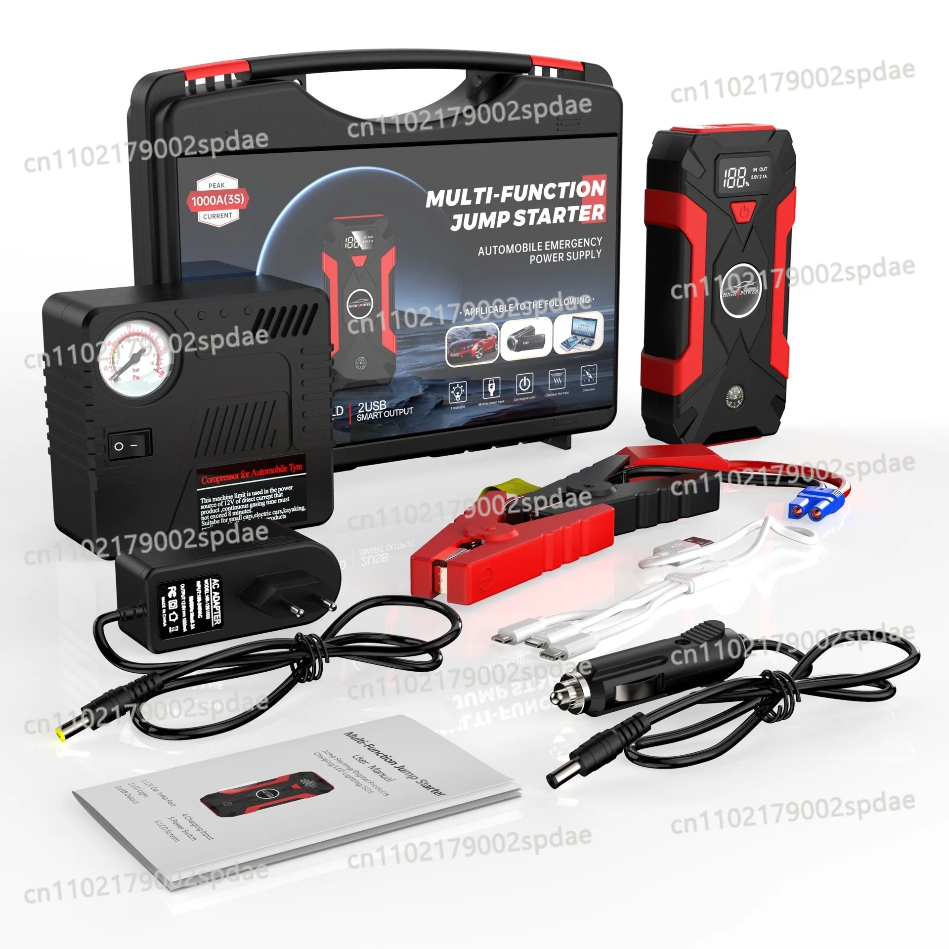 Многофункциональное устройство 4-в-1: профессиональный цифровой повербанк на 6000 мАч, автомобильное зарядное устройство, кабель для запуска двигателя и компрессор для подкачки шин