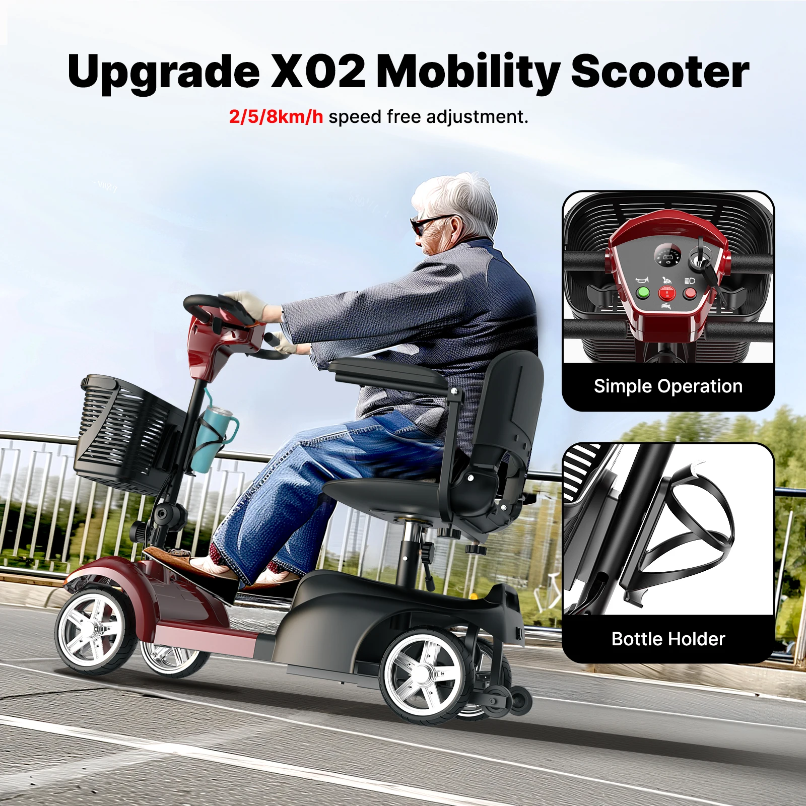 Электросамокат X02-1, 8-дюймовый, четырехколесный, 24В, 12Ач, двигатель 300Вт, максимальная скорость 8 км/ч, запас хода 25 км, с ключами, 3 режима регулировки.