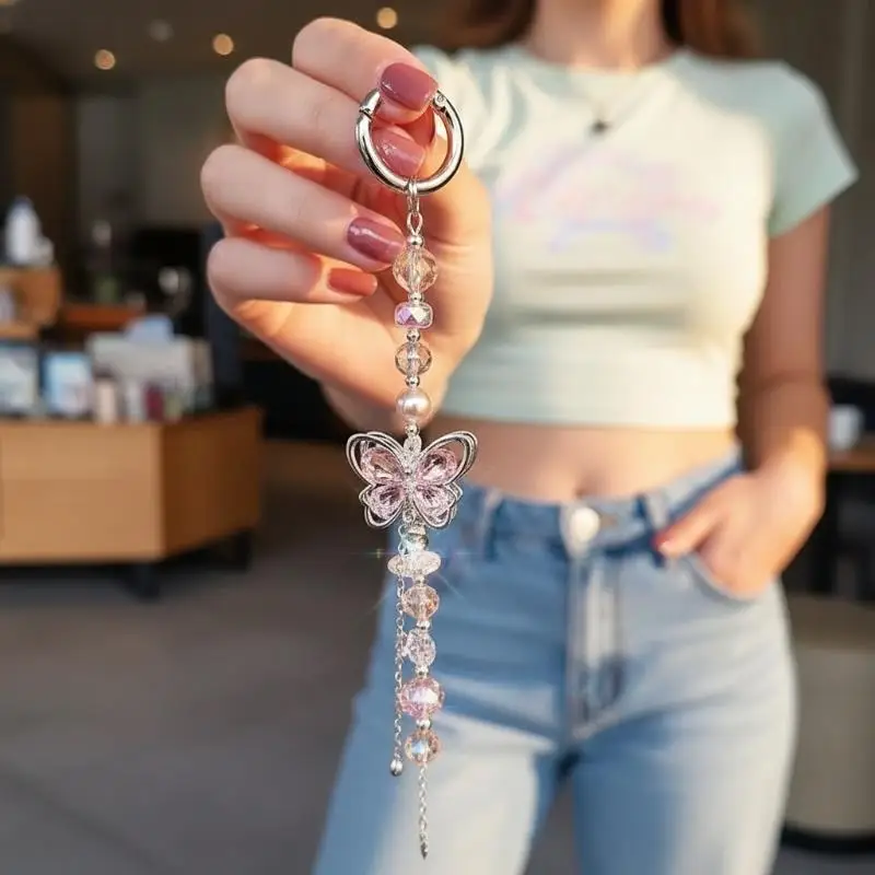 Новая оригинальная мини-цепочка с кристаллами, цепочка для мобильного телефона, подвесные аксессуары, веревка из бисера, короткая подвесная веревка, нишевые аксессуары