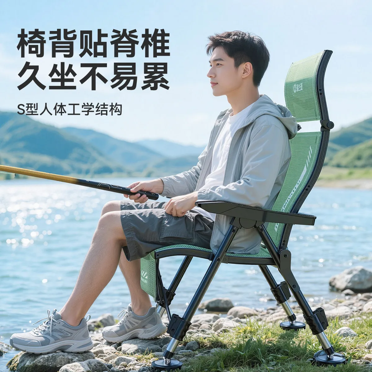 Многофункциональный стул для рыбалки, уличный стул для кемпинга с подставкой для ног 160г ° Регулируемые портативные стулья для отдыха с высокой спинкой