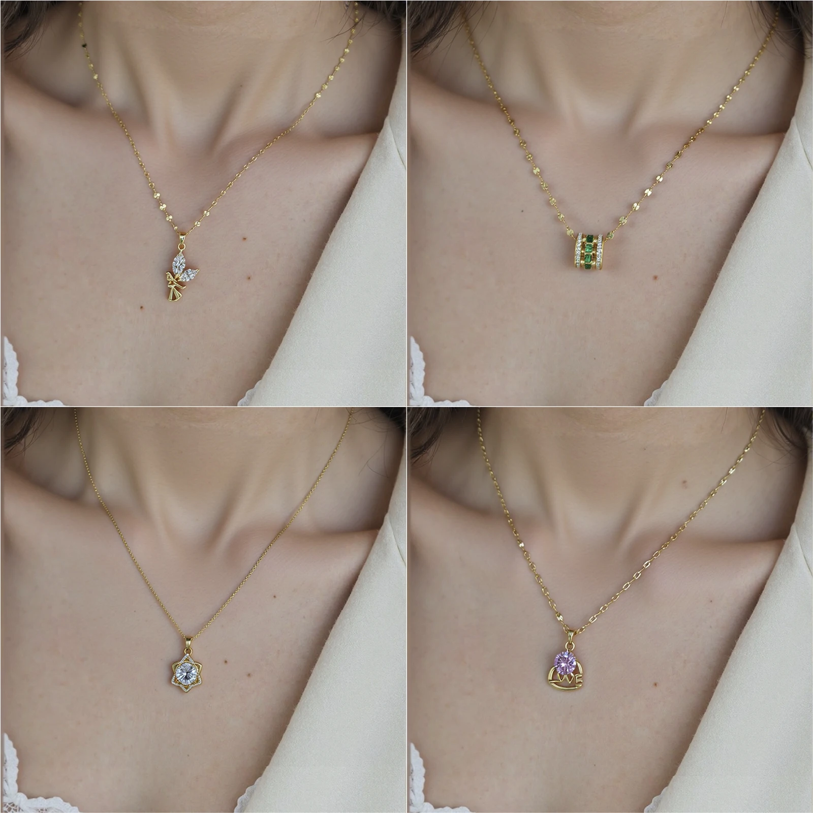 18-каратное позолоченное ожерелье из нержавеющей стали для женщин, медное ожерелье с подвеской, позолоченное сердце, бабочка, циркон, ювелирные изделия