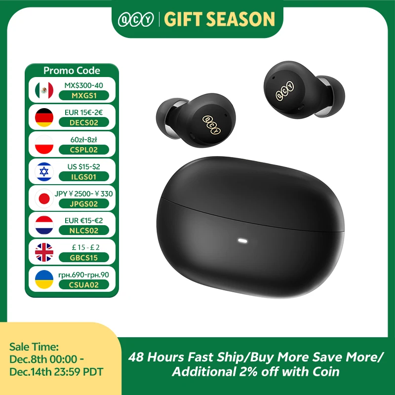 QCY HT07 ANC Беспроводные наушники 40 дБ с шумоподавлением TWS Наушники 6 микрофонов AI HD Вызов Bluetooth 5,2 Hi-Fi наушники Воспроизведение 32 часа