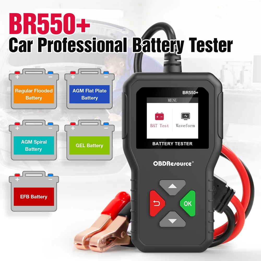 OBDResource BR550+ Тестер автомобильных аккумуляторов 6В 12В 24В, 100-2000CCA, измеритель напряжения, анализатор автомобильных батарей, диагностический инструмент, низкая цена