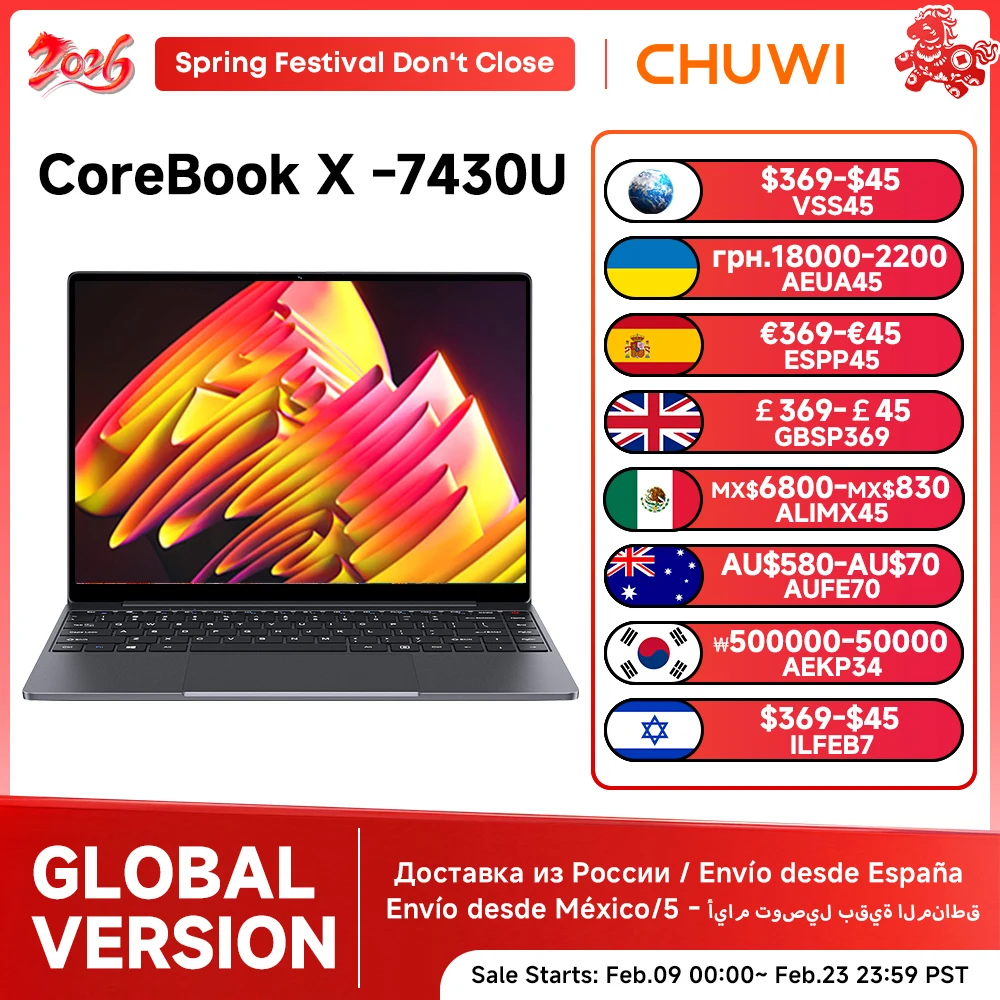 Игровой ноутбук CHUWI CoreBook X AMD R5-7430U, 6 ядер, 14,1-дюймовый FHD IPS-экран, 16 ГБ оперативной памяти DDR4, 512 ГБ SSD, ноутбук с громкой связью до 4,3 ГГц