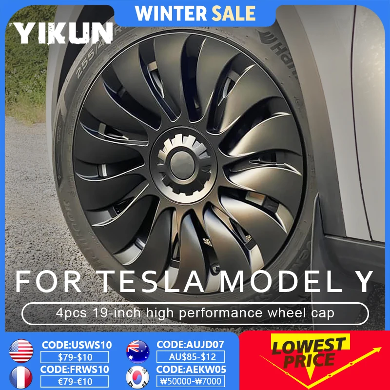 4 шт. крышка ступицы автомобиля, сменная крышка колеса, 19-дюймовая автомобильная крышка ступицы, полное покрытие, аксессуары для Tesla Model Y 2023 2024