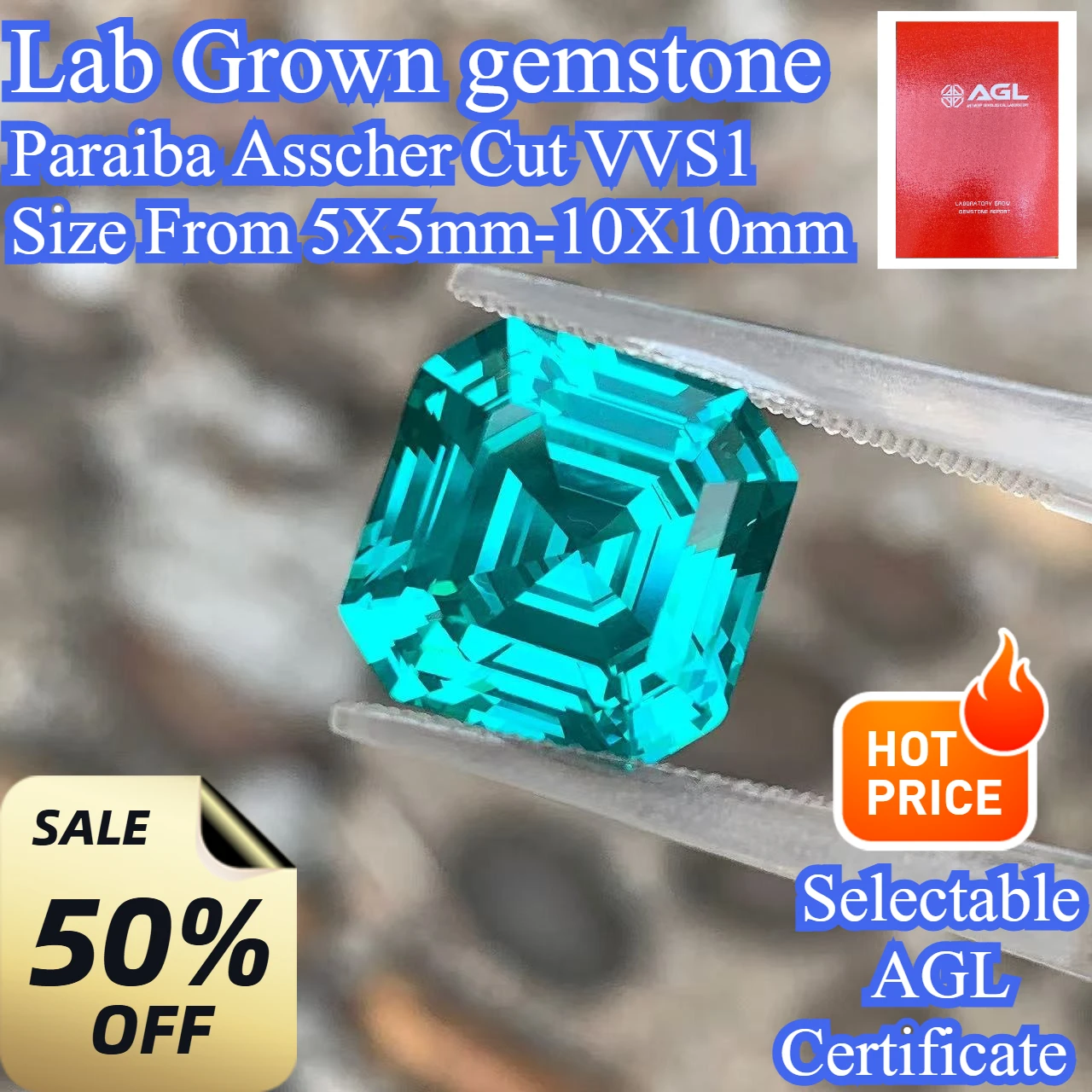 Лабораторно выращенный камень Ассчер-каймообразной огранки с эффектом параиба, сертифицированный AGL, для продвинутого изготовления ювелирных изделий своими руками: инкрустация для колец, ожерелий, браслетов и аксессуаров