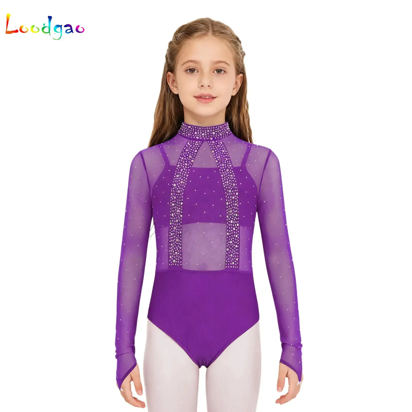 Детский боди с блестящими стразами для девочек, гимнастический костюм для танцев, балетный трико с длинными рукавами, танцевальная одежда для выступлений на сцене