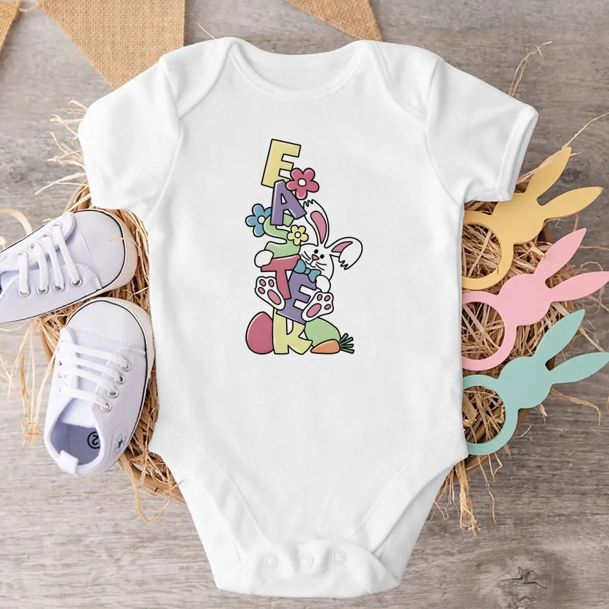 Милый комбинезон с изображением кролика для малышей (мальчиков и девочек), хлопковый, с коротким рукавом, с принтом пасхального кролика, креативный комбинезон-боди для новорожденных на Пасху