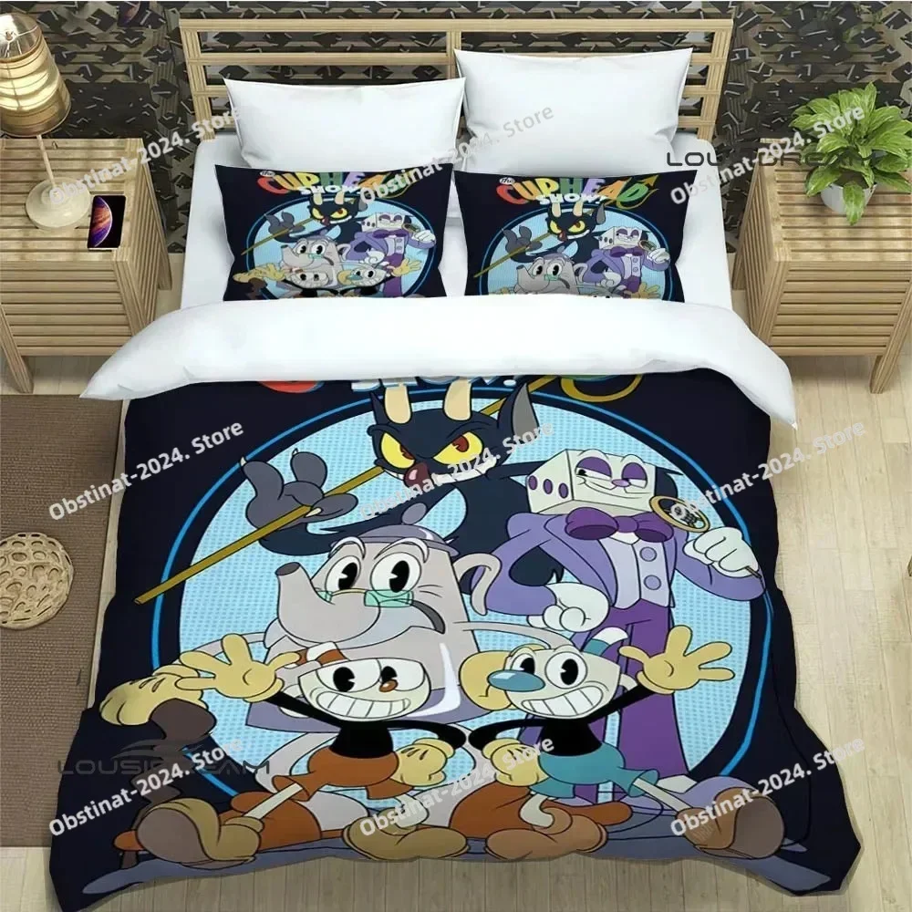 2025 Cuphead мультяшный комплект постельного белья с принтом, одиночное одеяло, пододеяльник, наволочка, комплект из 3 предметов, размер для детей и взрослых