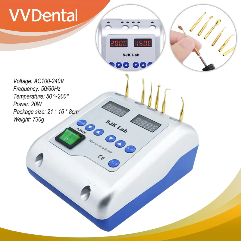 Электрический восковой нож с двойной ручкой для стоматологической клиники - Smart Control 50-200 ℃ , Автоматическое напряжение 100–240 В, подставка для двух ручек