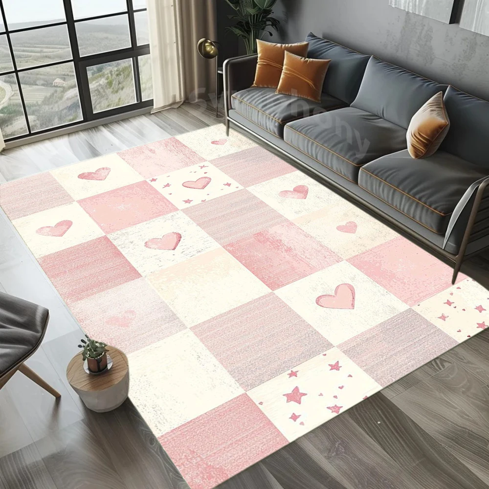 Checkered srdce střih areál kobereček roztomilá sladké design ne kolíček omyvatelné koberec pro ložnice žití pokoj děvče pokoj domácí dekorace