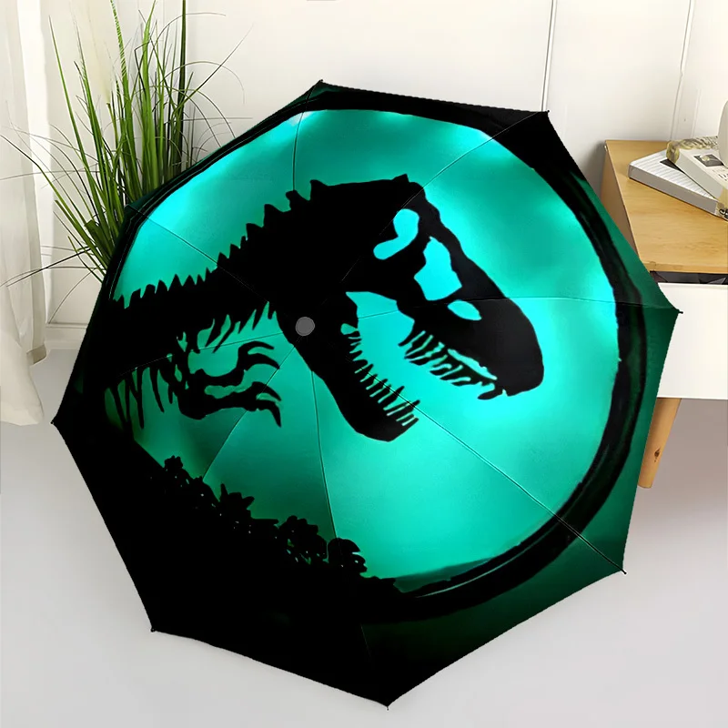 Jurský t-rex 5barvy móda déštník, odolný & pohodlné na držet, automatický otevřený, 8-rib design, černá s teal dinosauři silho