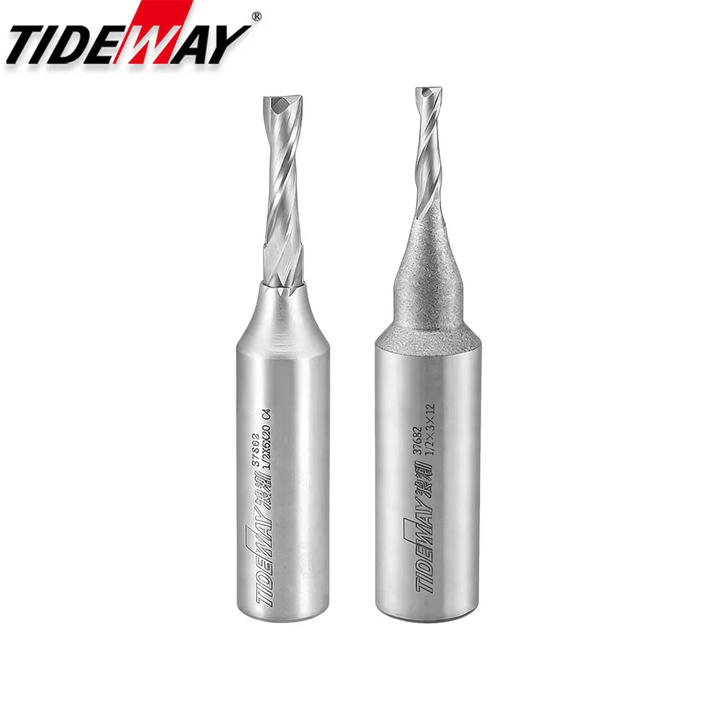 Tideway TCT spirála frézku bitech 2se flétny celistvý karbid nahoře krájet spirála kousek 1/2 palec stopka CNC řezací gravírování dřevoobráběcí nástroje
