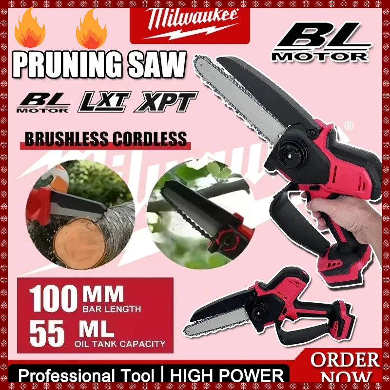 Milwaukee 18v baterie high-power motorová pila 8 palec auto mazač bezuhlíkový elektrický běžící pás pila prořezávání dřevo řezací energie nástroje