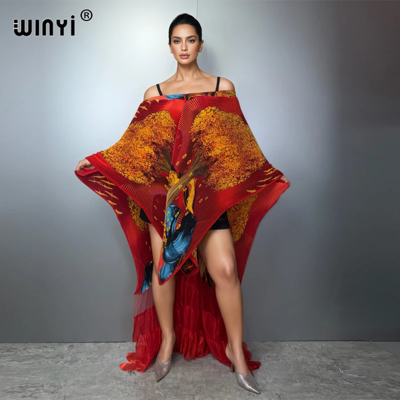 WINYI dámská plisované nepravidelný nejvyšší šaty uválet design volné róba sexi maxi večírek pončo volné odpovídat soumrak talár